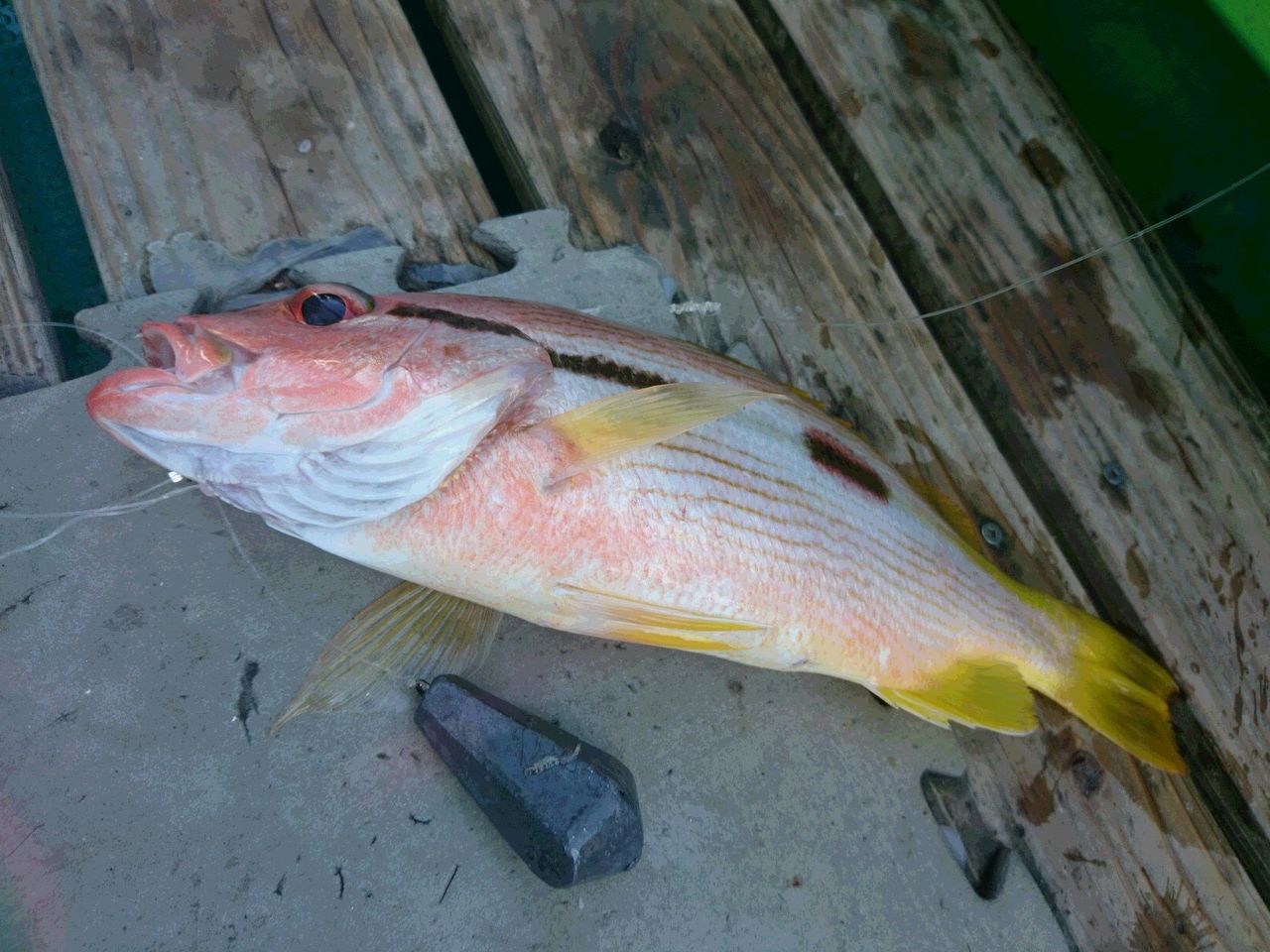 沖の潮目でアゴが飛んだのでルアーを投げて見ると❗直ぐに掛かり