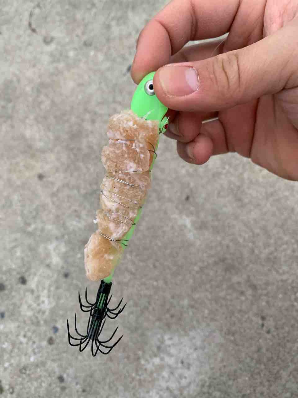 餌を針金で巻いて取れないようにセットします。