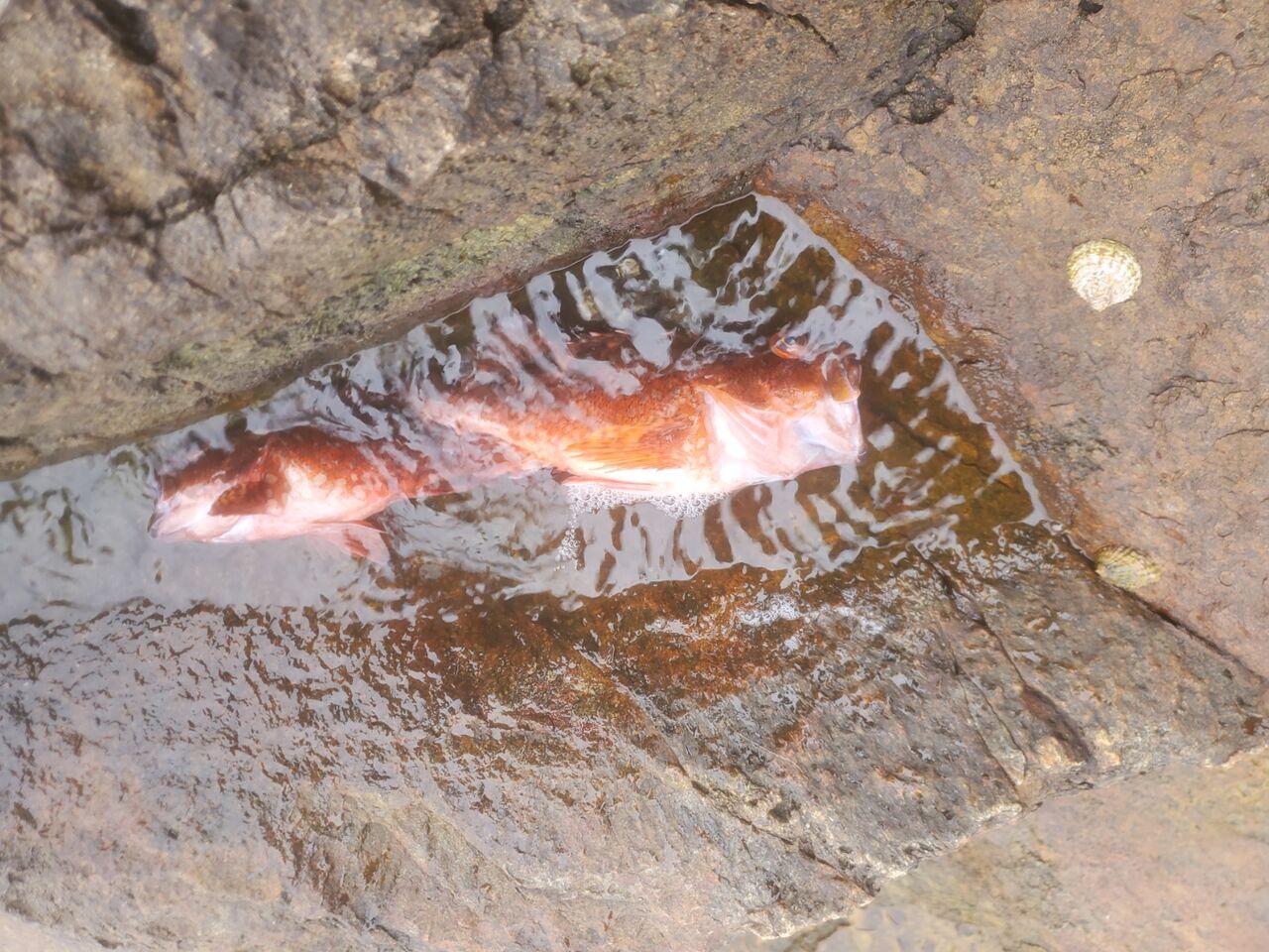 その後キャスト繰り返すも反応得られず、最終兵器ワームを投入するも、カサゴしか釣れない状況。