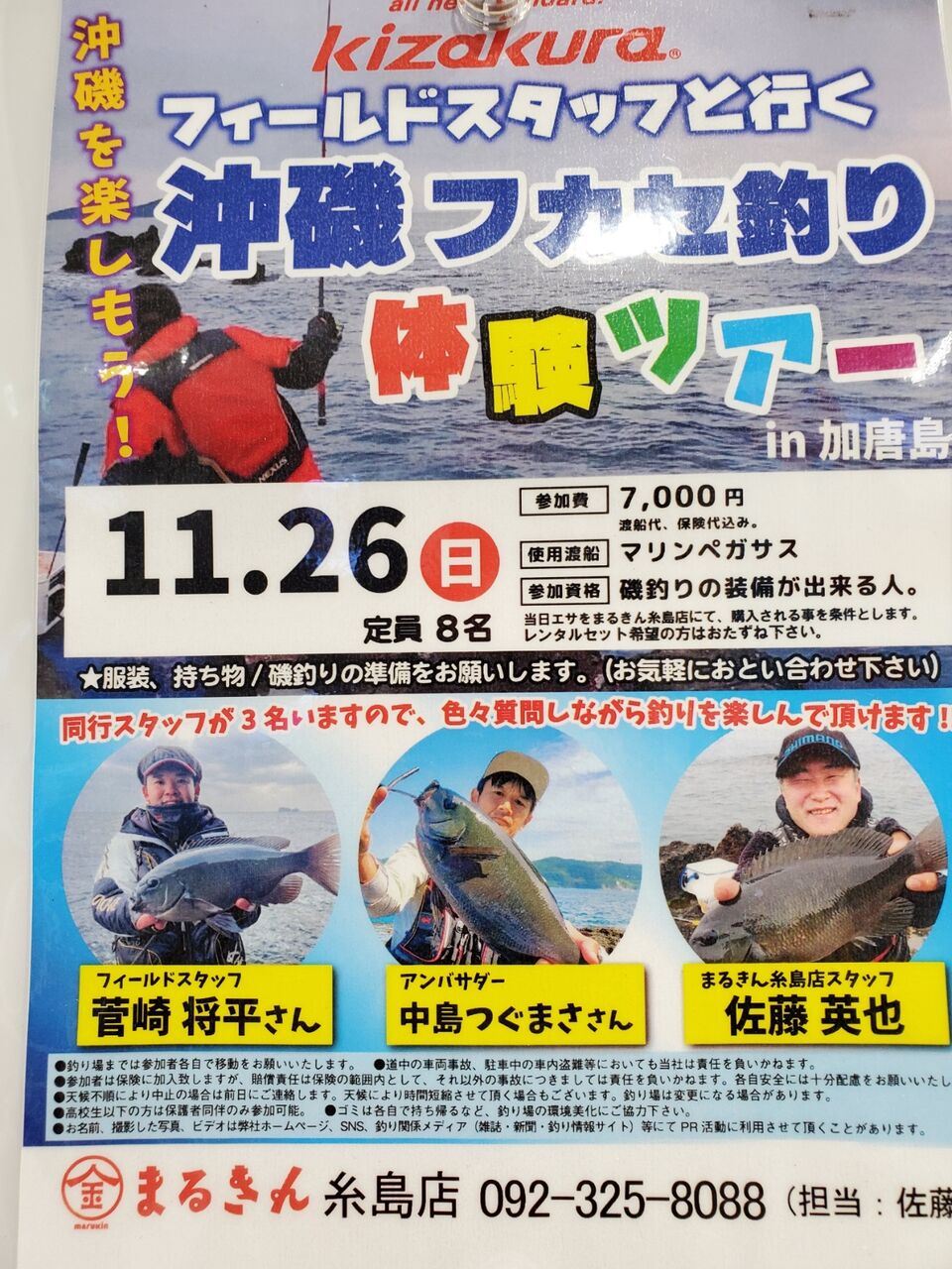 特別講師としてキザクラフィールドスタッフの、菅崎将平さんと中島つぐまささんに参加して頂き、沖磯の楽しさやマナーを知ってもらうツアーです❗