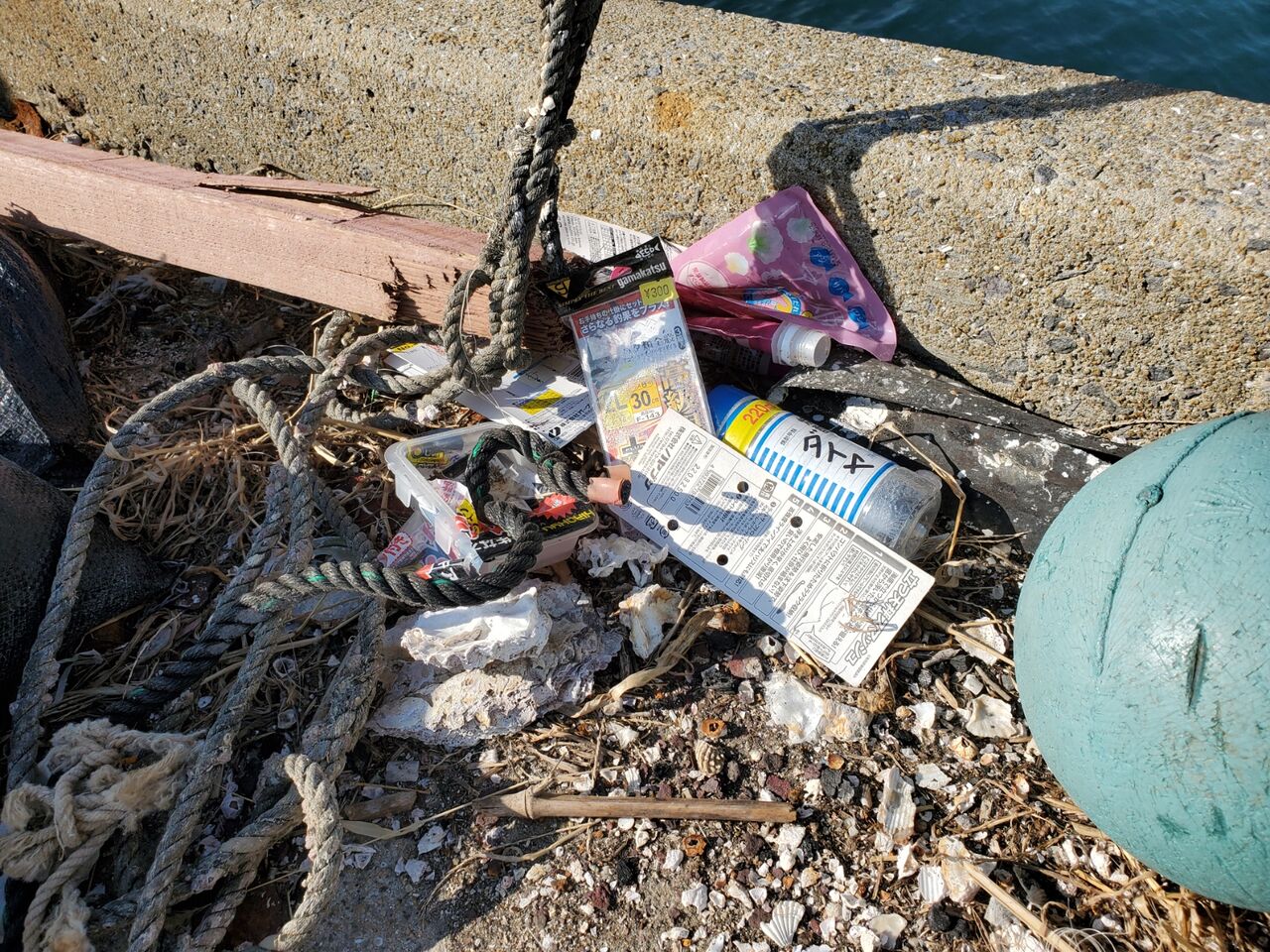 全体的にゴミは少なかったですが、サビキの仕掛けやタバコの吸殻が多かったです。