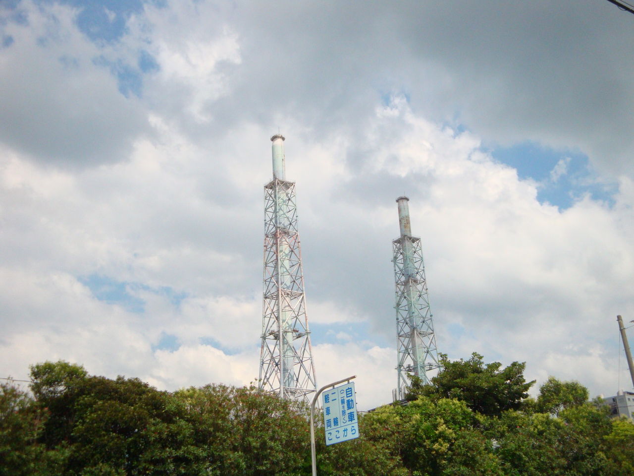 ずっと直進して警察署・消防署を過ぎると2本の煙突が見えてきます