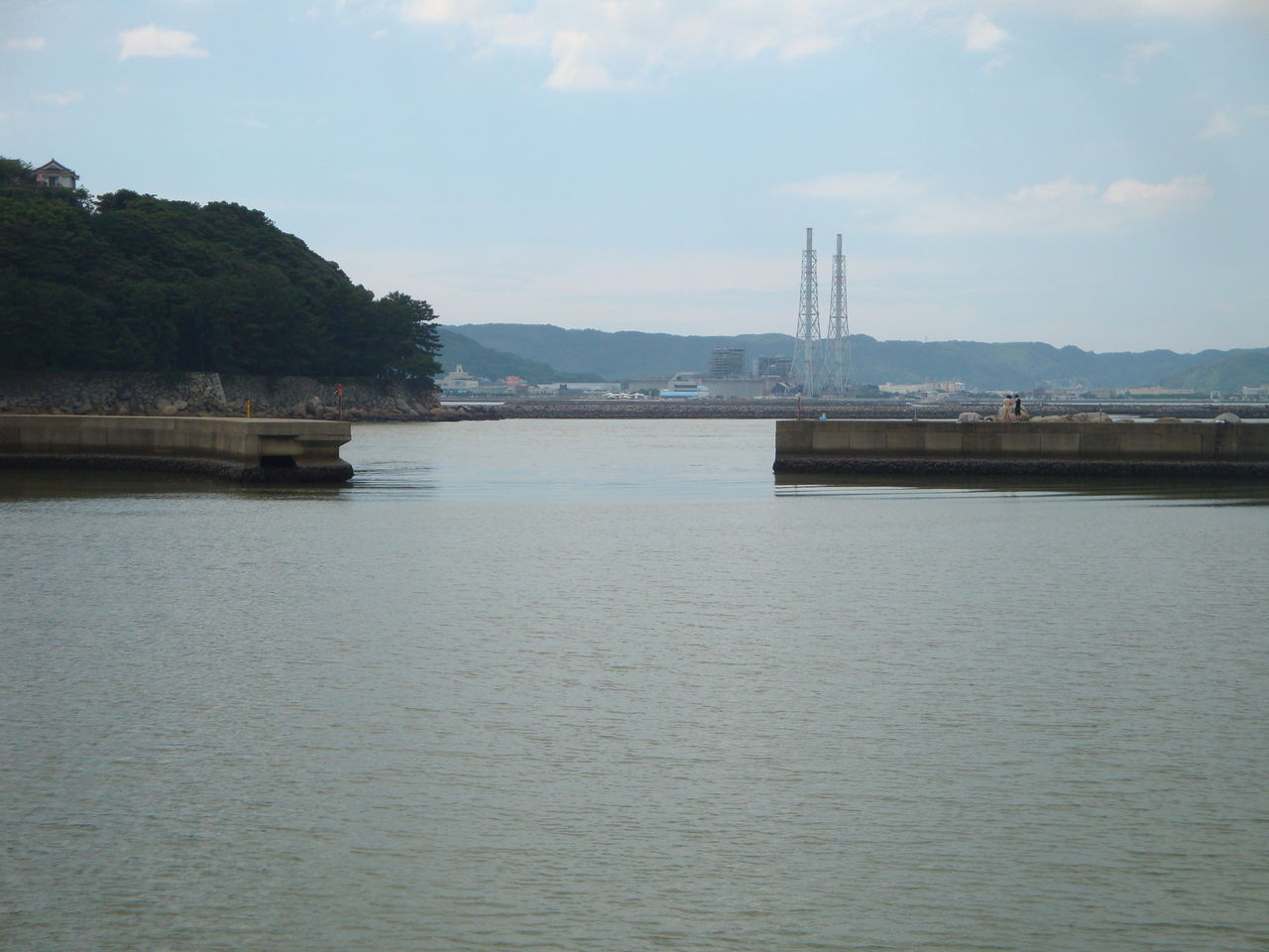 左右防波堤がありますが、左の防波堤は釣り禁止
