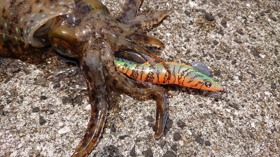 前回のエギングの際にゲソカットしてバラシタので