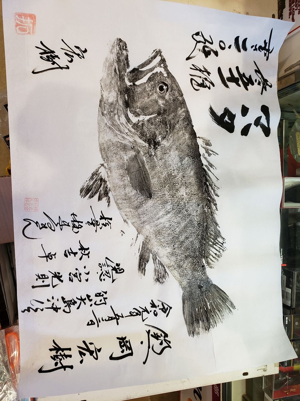 釣行後は佐賀店にて魚拓の練習!