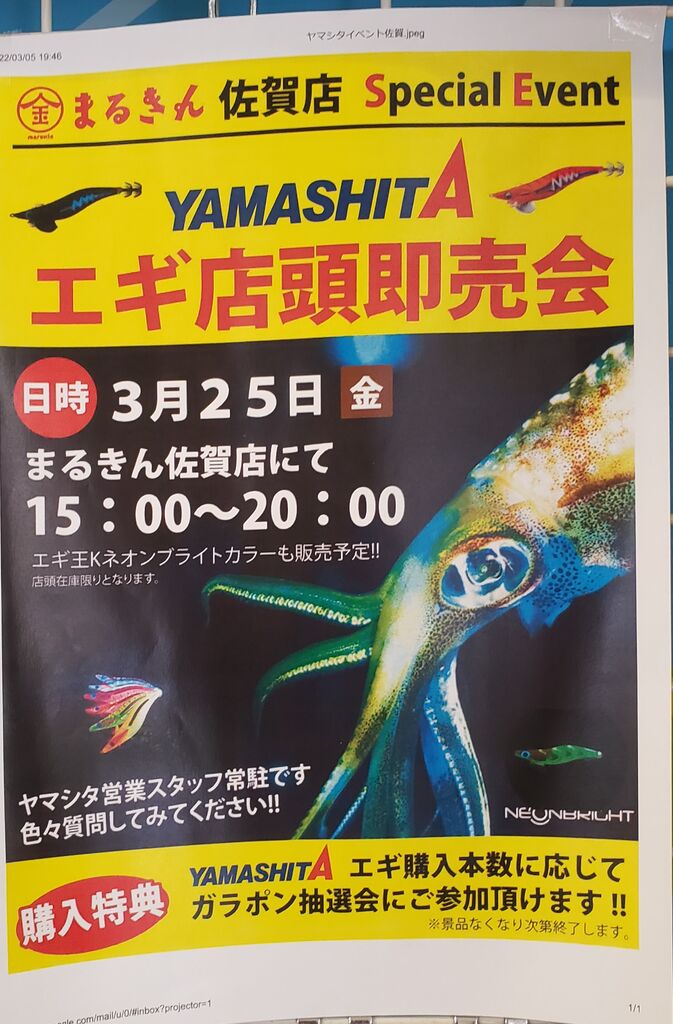 3月25日金曜日はヤマシタエギの店頭即売会となっております。