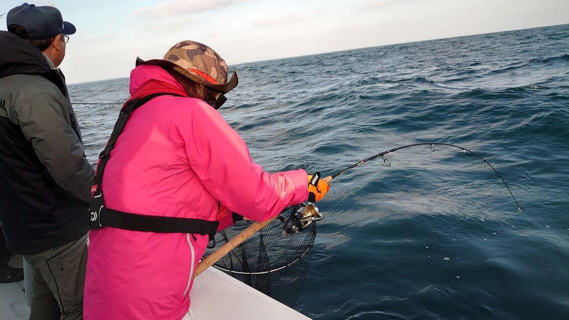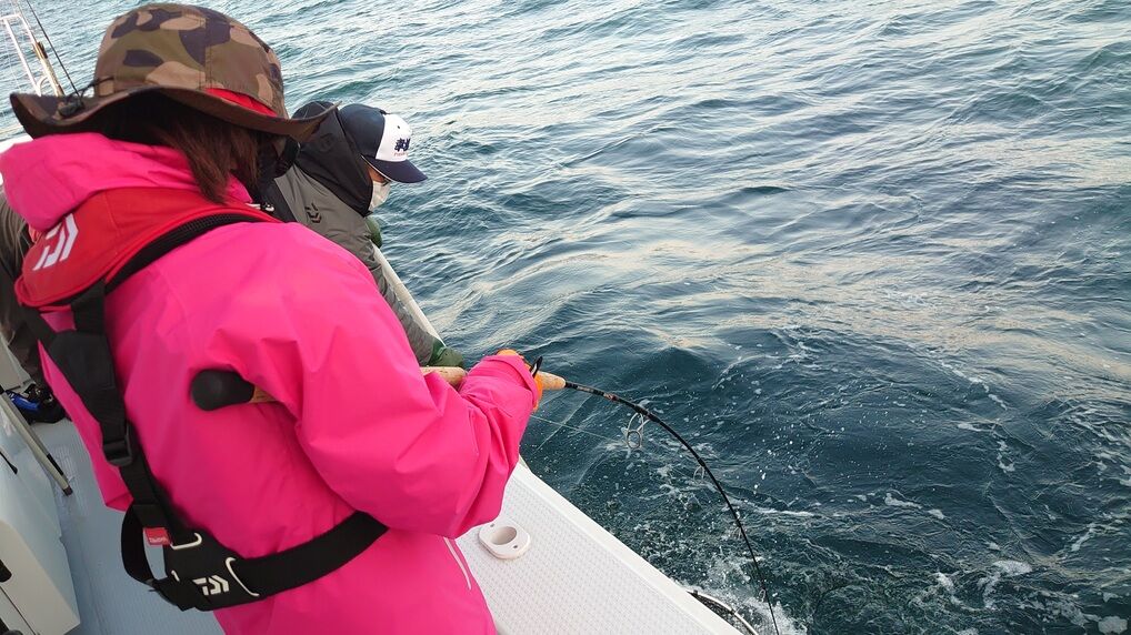 後半の追い込みに期待してジグを落とす