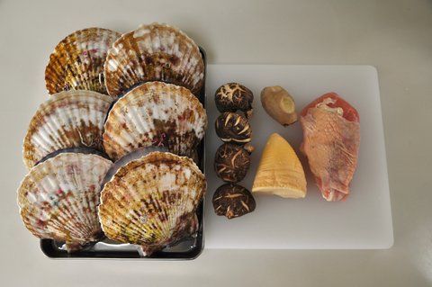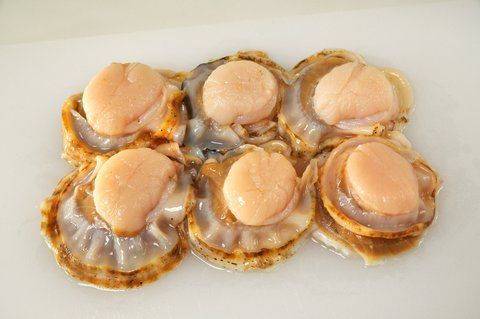 - ホタテ貝は貝から身を外しウロを取り除いておく。