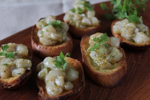 - 帆立は5ミリ角に切る。