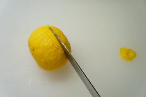 - 包丁で皮と身の間に切り目を入れ一周まわし、スプーンなどを使い中身をきれいにくりぬく。