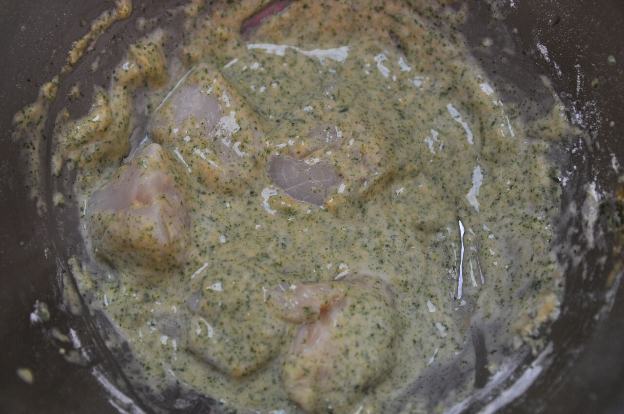 - (3)に(1)(2)と香菜の茎の部分を入れよくあえる。