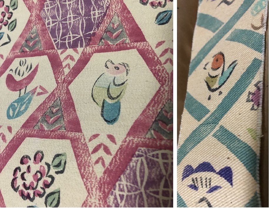 大満足で知半庵に戻って開場の準備。ひで代さんのデザインに鳥はないかと探して見た。素晴らしい幾何学模様や草花がほとんどだが、中に鳥らしい模様がわずかにあった。可愛い。