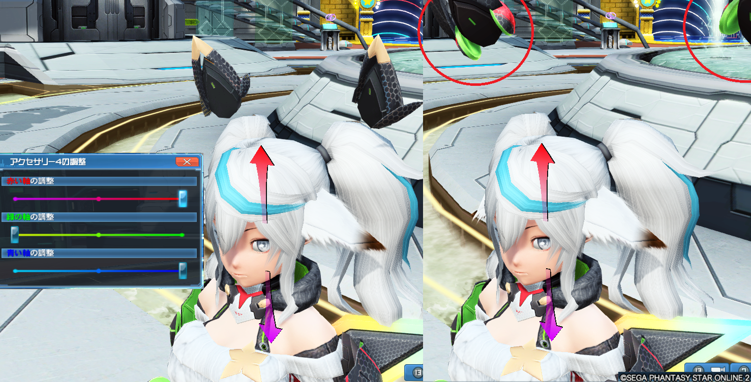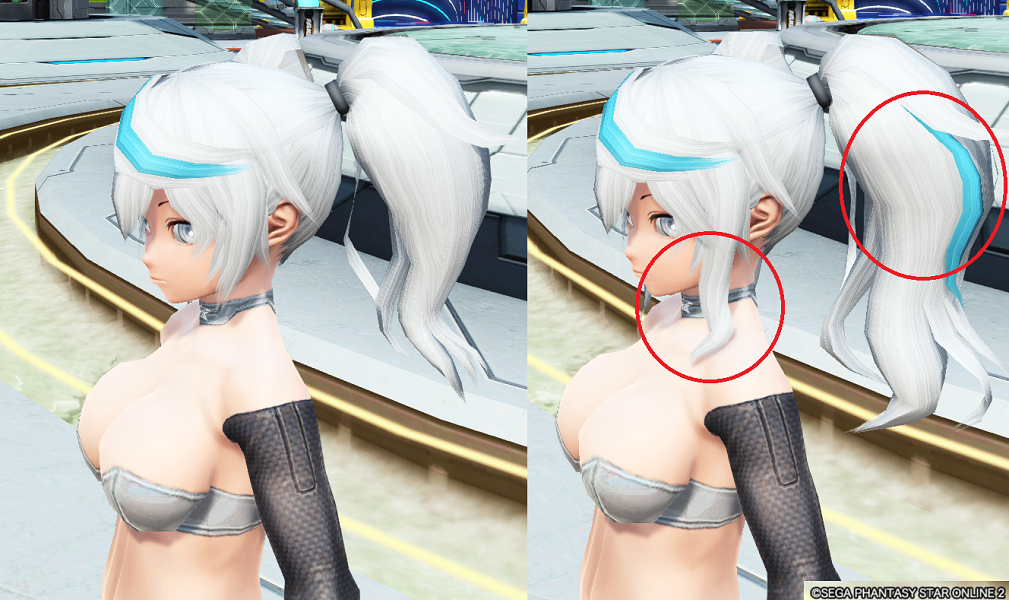 旧と比べてもみ上げとツインテが長くて、メッシュの位置が増えてます。