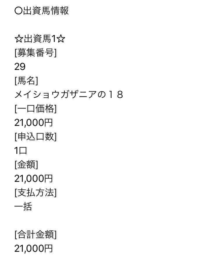1口21,000円ですし、未勝利でも痛手は少ないですから。