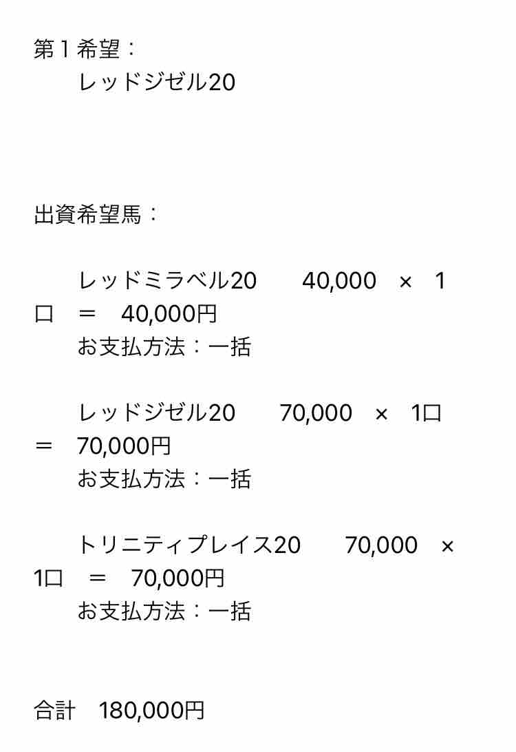 要因が何かは分からないですが、出資馬が走る走らないの前に出資できるできないが入ったのが大変すぎます。