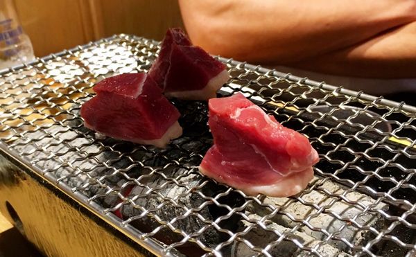 焼き方とおすすめの食べ方を店員さんに聞いて網の上に。