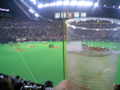 試合前には稲葉弁当とフライドポテトをつまみにニッカの竹鶴の水割りをのんだりしてご機嫌で迎えたプレーボールでした。