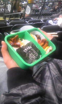 昨年とまた内容も新たになりまして、背番号の41とINABAの文字の入った海苔!が入ってまして、その海苔だけを「もったいない」と息子はお持ち帰りしております。