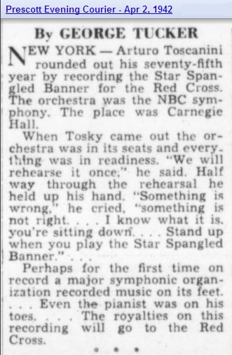 トスカニーニとNBC響も時代の必要から一時期コンサートのたびにアメリカの国歌を演奏していた時期があり、RCAへの録音も残っています。