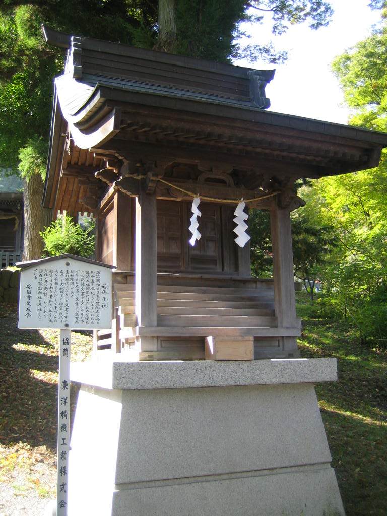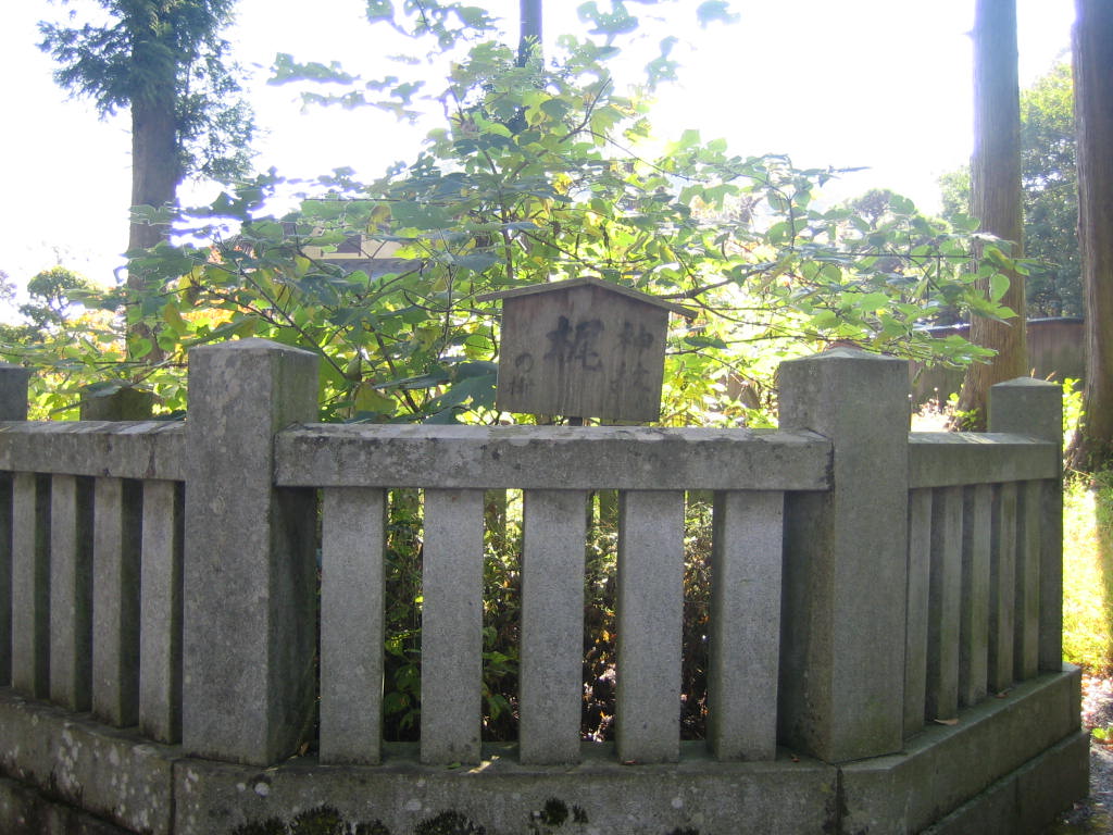 境内正面から向かって左に諏訪大社の家紋に使われている梶の木が祀られています。