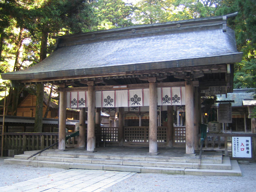 幣拝殿の向きが御神体である守屋山に対してそっぽを向いている為、
