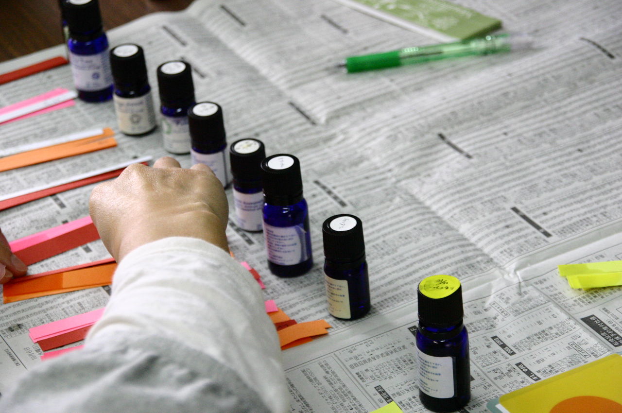 お気に入りの精油の香りを皆さんに香っていただきました。