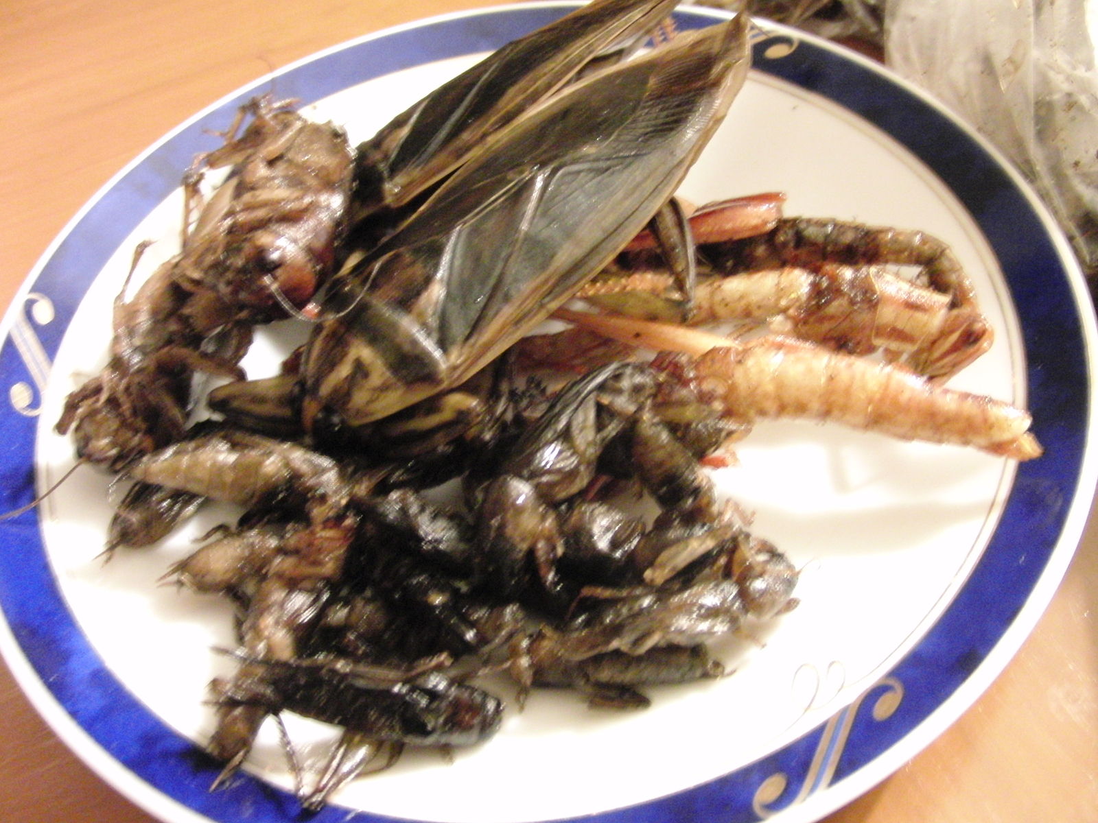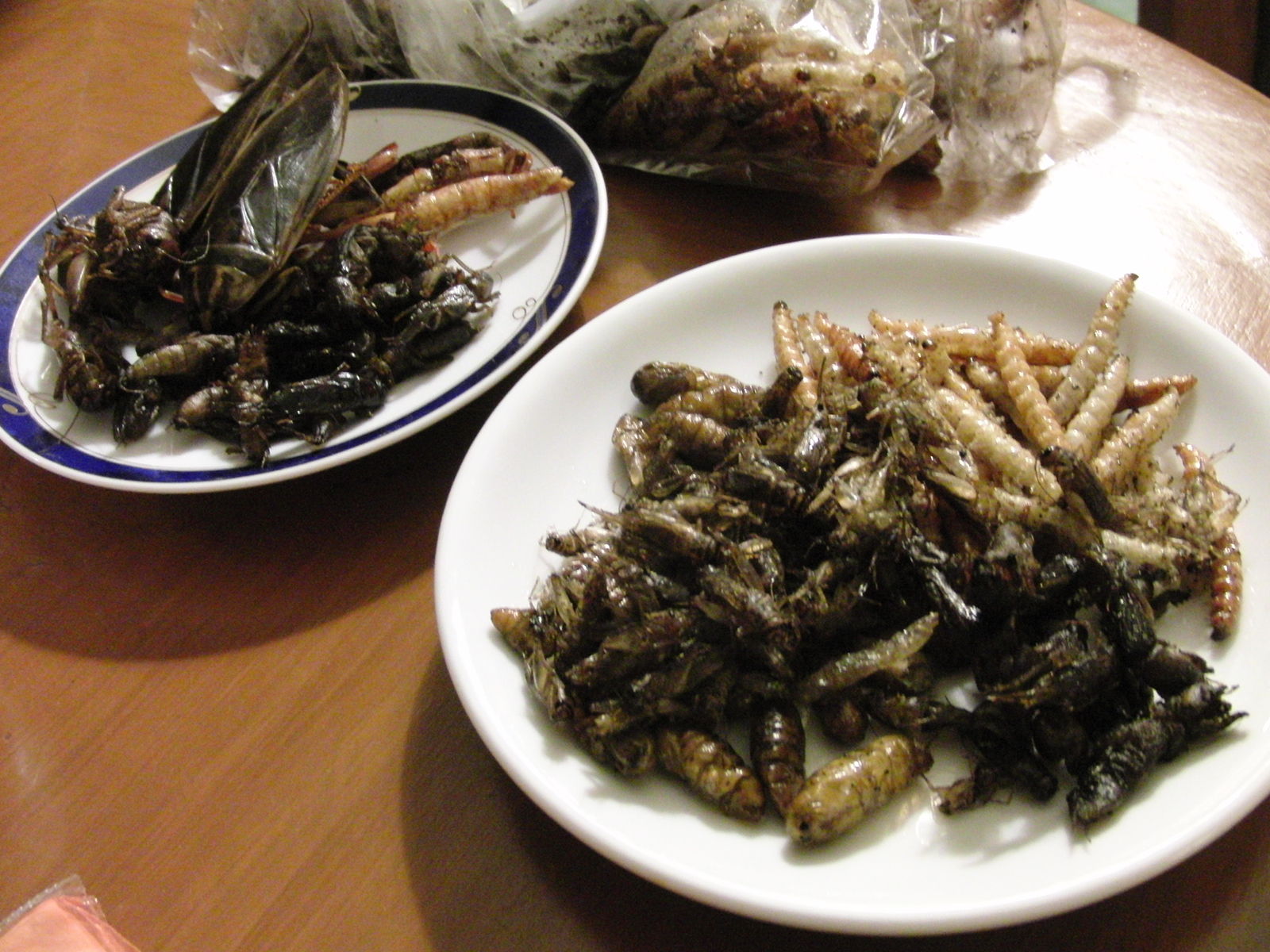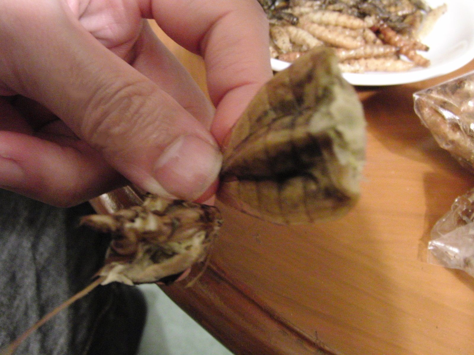 蛾の幼虫は揚げられていてさくさくしていて普通に美味しい。
