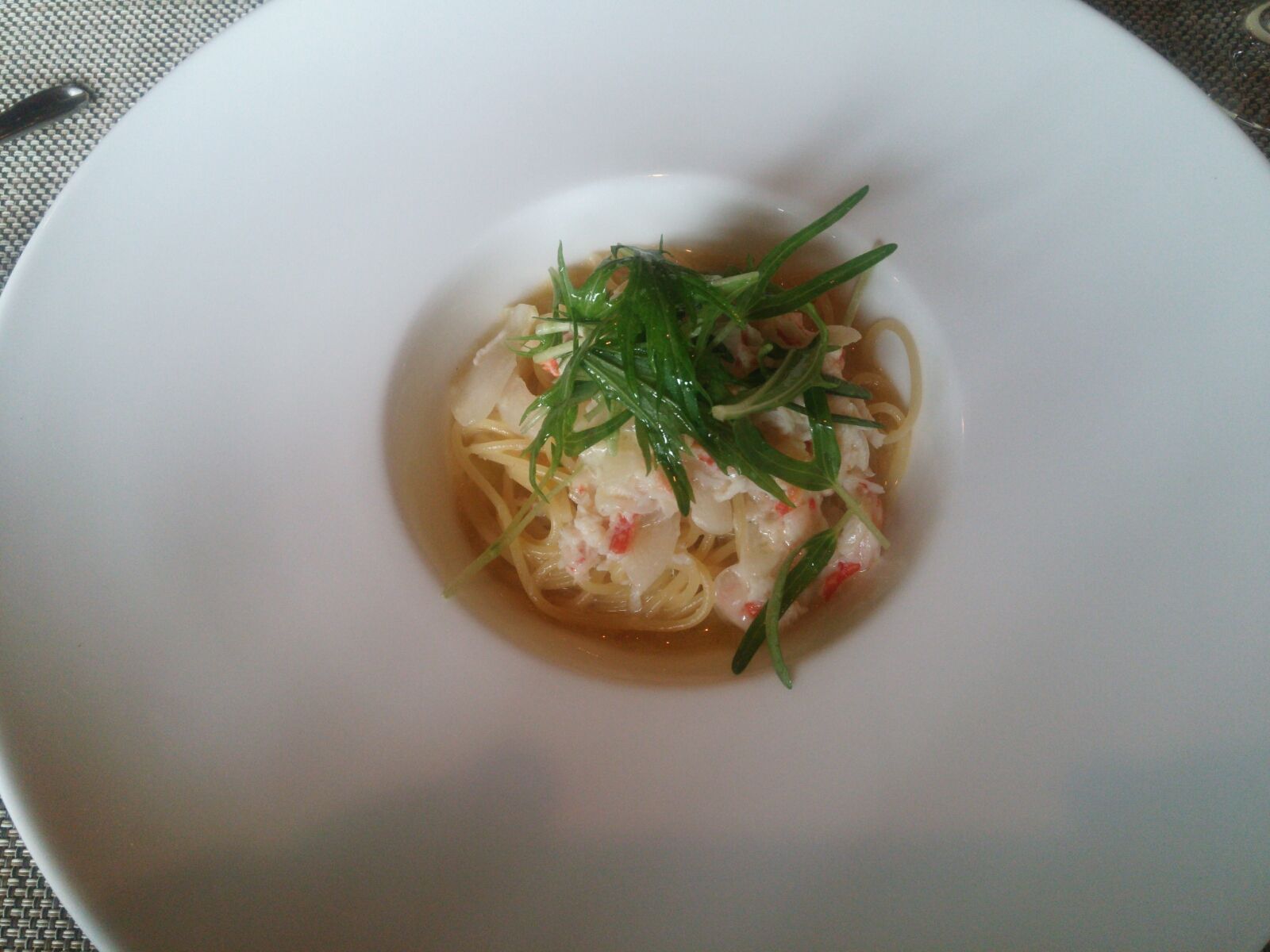本ズワイのクリームパスタ、玉ねぎの甘みがアクセント。