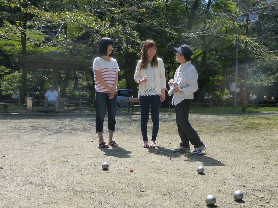 途中、花木広場で金華ふれあいクラブ(老人クラブ)のペタンク部が活動中で、少し仲間に入れてもらいました。時々プレイさせてもらいますが、大変奥の深い競技で、80歳の先輩に太刀打ちが出来ません。若いインターン達には、生涯スポーツの意義を理解するきっかけになったと思います。