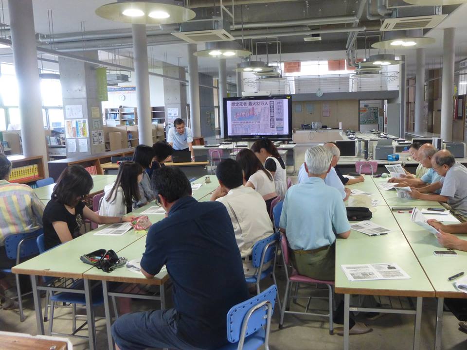 岐阜小学校で、防災に関する職員研修があり、学校運営協議会(コミュニティ・スクール)安全安心部のメンバーも参加しました。