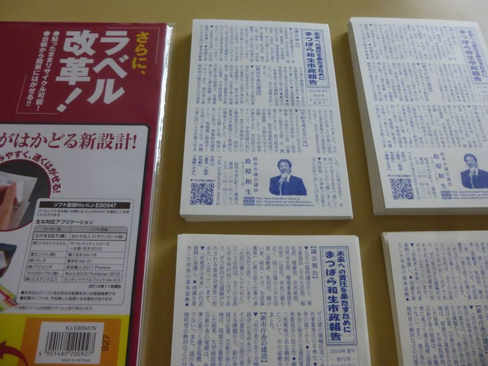 午後は、柳津の大会議室で、岐阜県後期高齢者医療広域連合議会に出席(インターンは傍聴)。県内の市町村長らがメンバーで、岐阜市長、各務原市長、関市長、北方町長、坂祝町長他と名刺交換をさせました。議事終了後は、国の特定個人情報保護委員会委員長(一橋大学名誉教授)から「マイナンバー制度導入の意義」について講演を受けました。