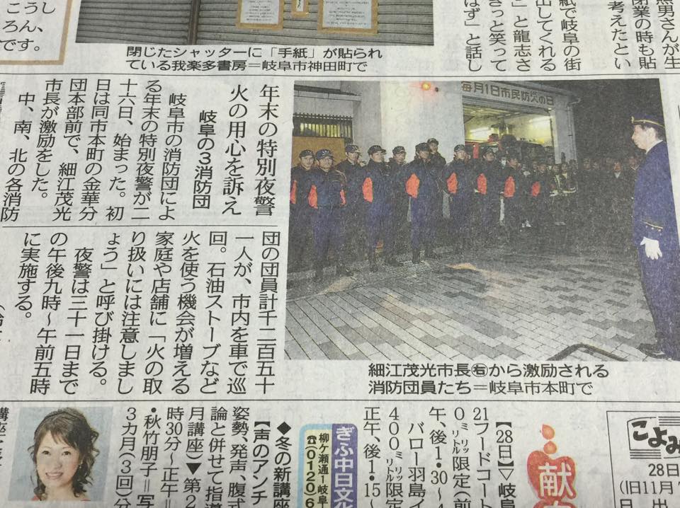 ※今夜から12月31日まで、5夜連続で、消防団員が地域を巡回して「火の用心」を呼びかけます!