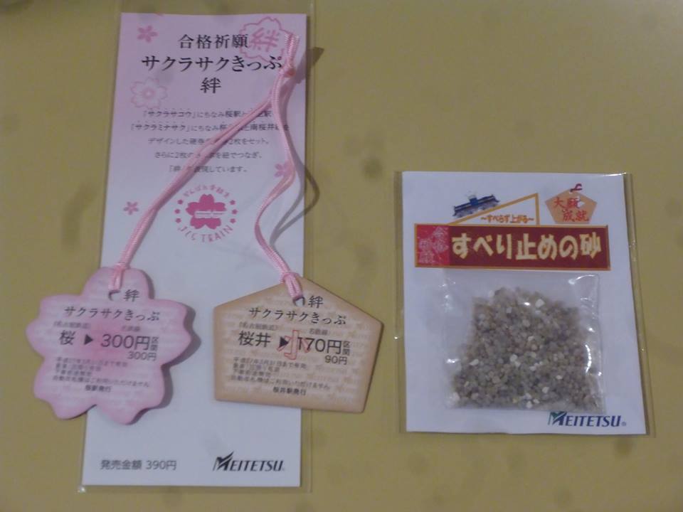 受験シーズン本番を前に、名鉄主要駅で発売中ですが、特に名鉄岐阜駅・津島駅・江南駅で購入すると、「必勝祈願!すべり止めの砂」がもらえます。