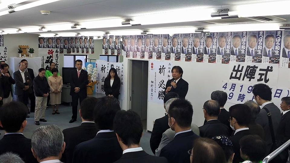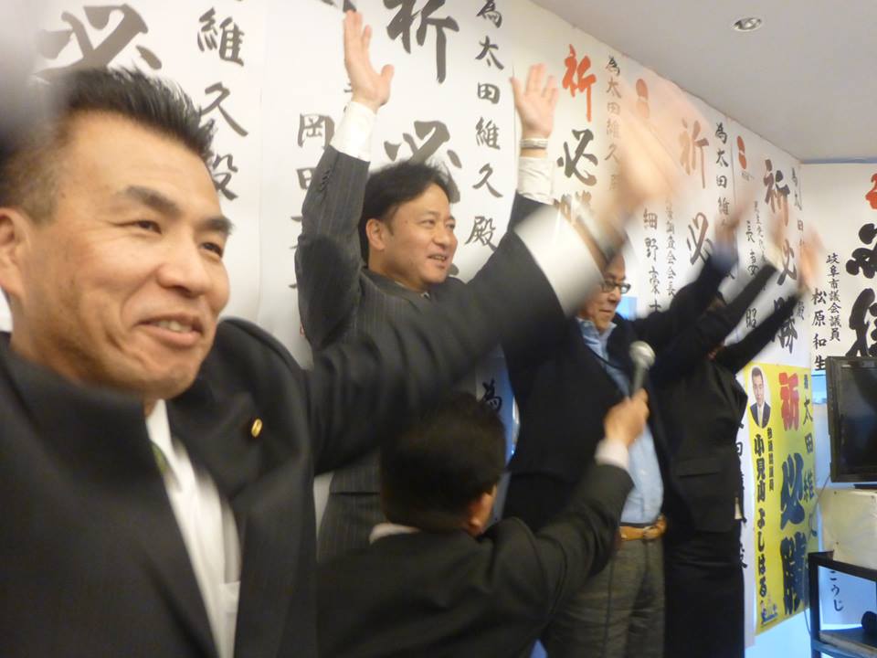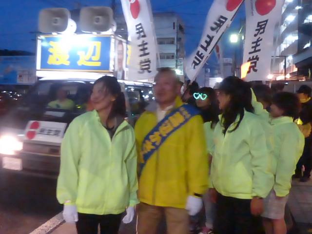 17時から、徹明~京町~金華の順で最後のお願いを訴えた後、19時40分から選挙事務所前で打ち上げ式。明日の夜に笑顔での再開を誓い合って、必勝ガンバロウで選挙戦を締めくくりました。