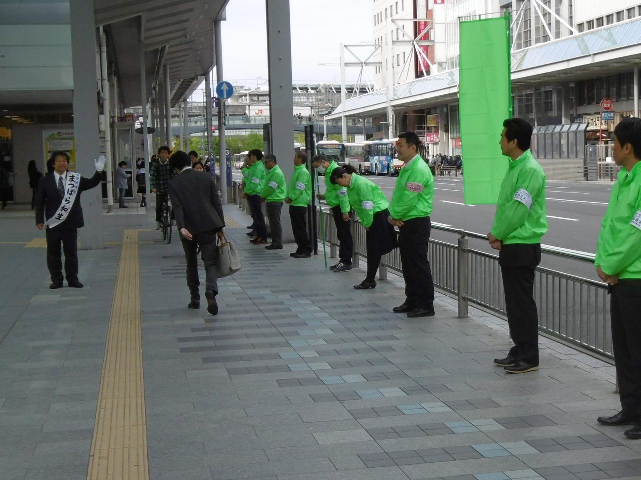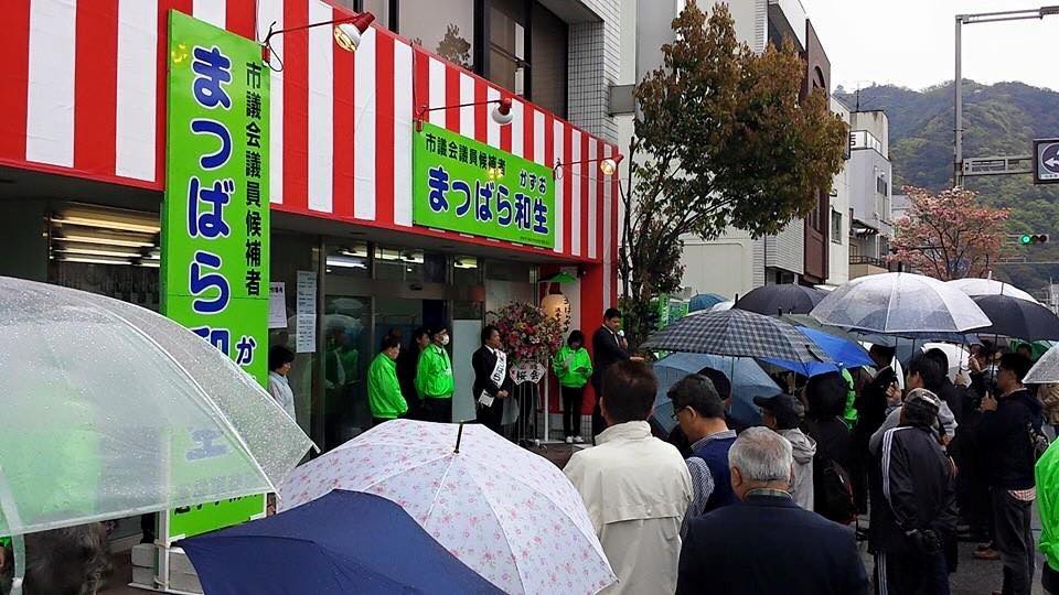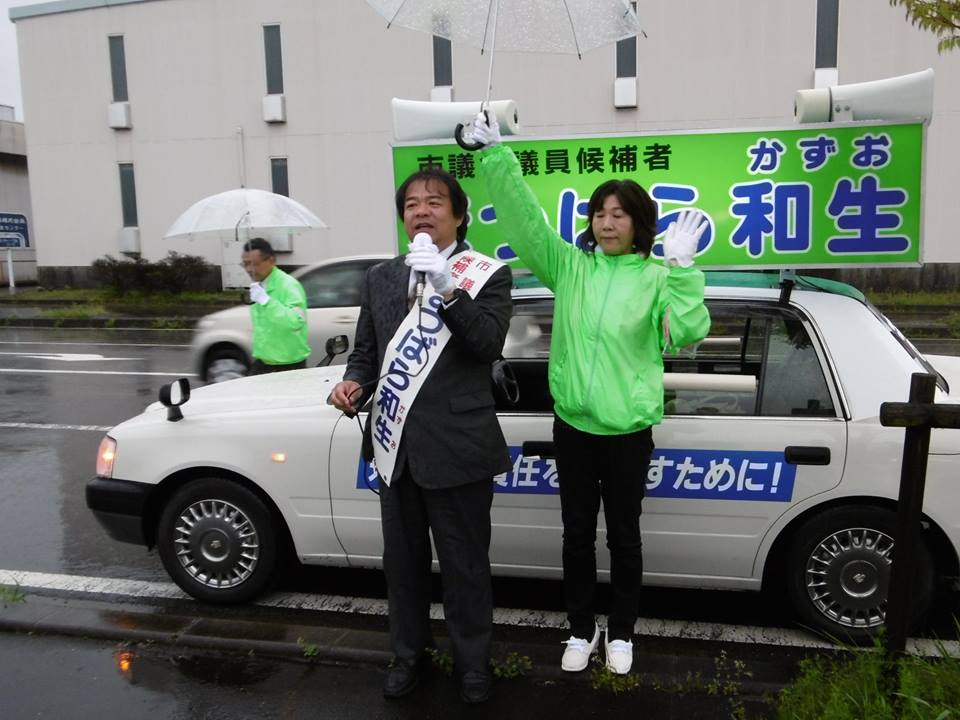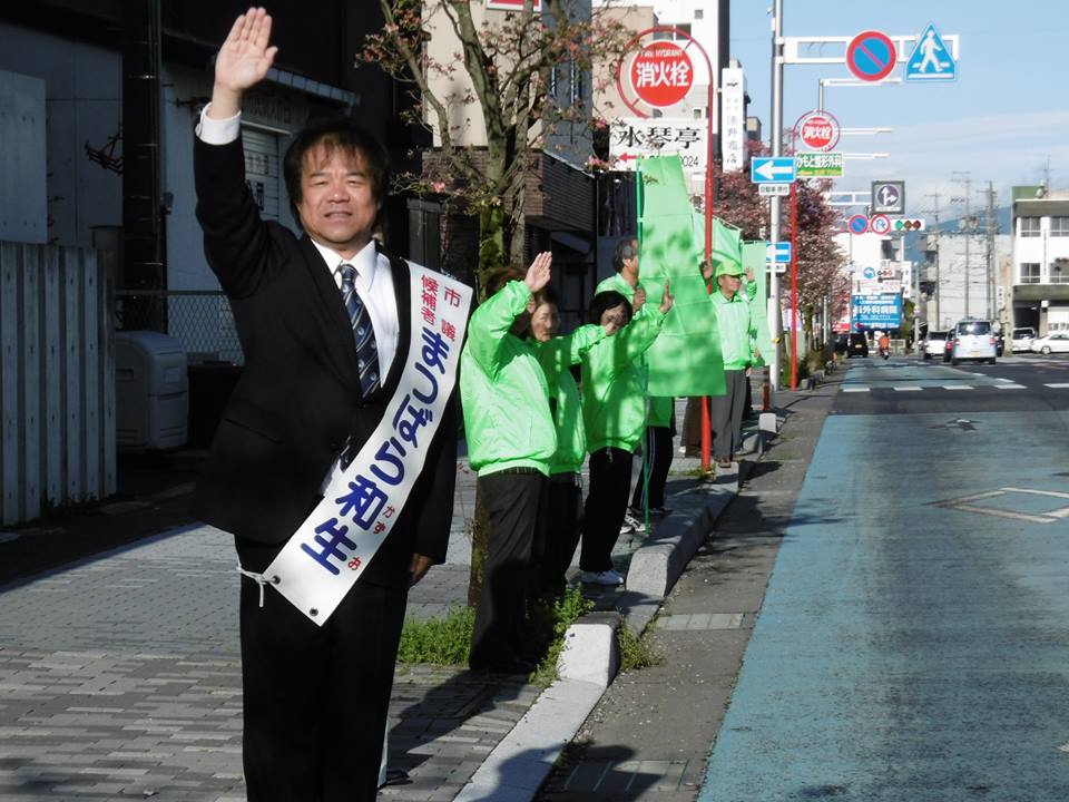 朝7時から、本町の選挙事務所近くで、地域の皆さんと一緒に「朝立ち」(業界用語)です。幹線道路を駅前方面に流れる皆さんに、大きく手を振りました。