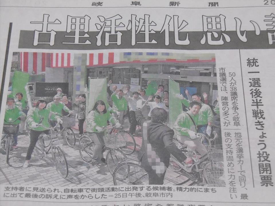 名鉄岐阜駅前や、柳ケ瀬で街頭演説を行った後、13時から金華地区全体へ4時間かけた(13時~17時)自転車街宣を行ないました。