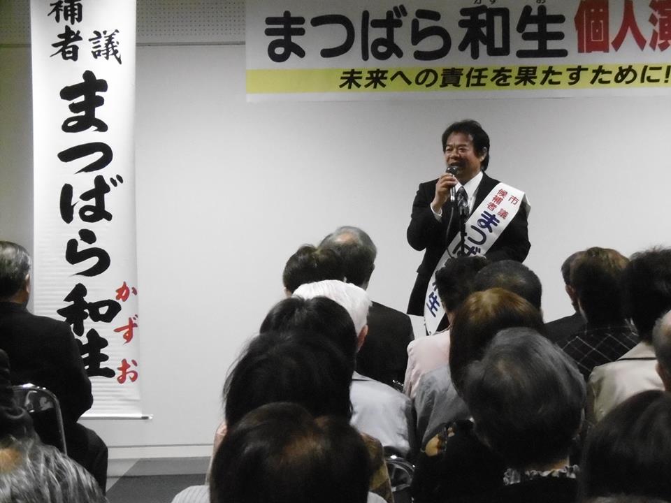 夜は京町公民館で初の個人演説会。3人の地元弁士(地域代表、女性代表、友人代表)と司会とガンバロウは、岐阜小PTAとコミュニティ・スクールを通じて一緒に汗を流した、京町地区の有力者の皆さんが全て担当してくれました。応援弁士には岐阜市長夫人と北方町長も駆け付けてくれました。