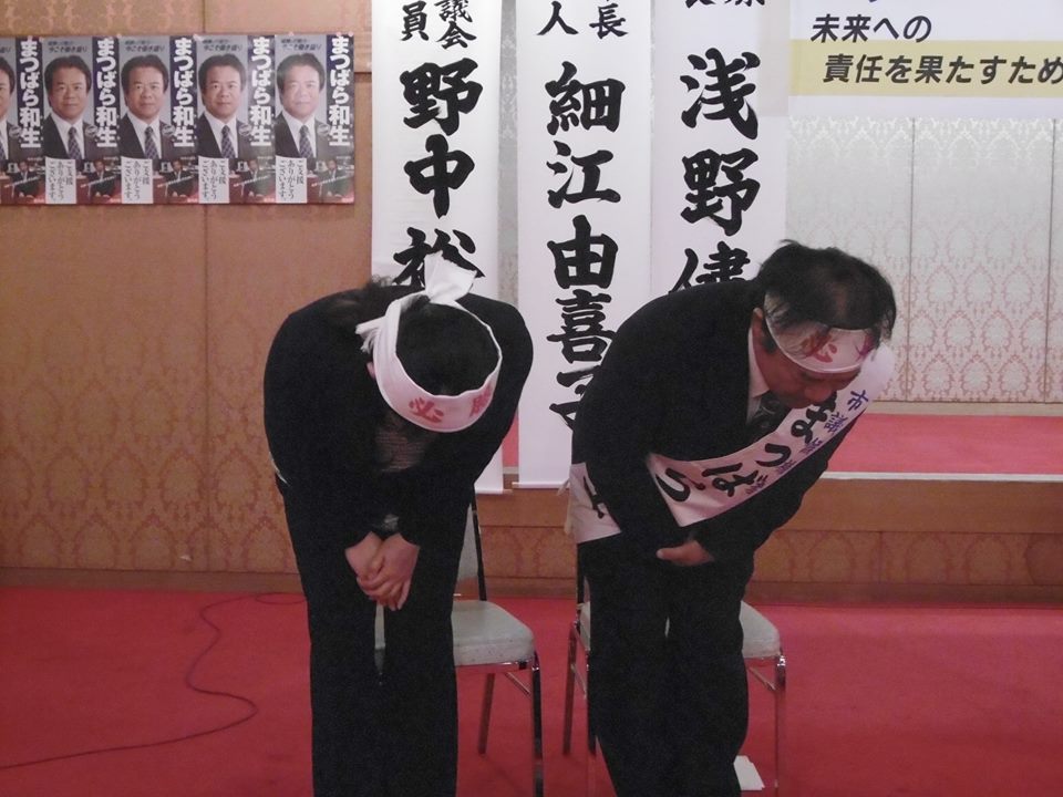 夜には、地元の伊奈波神社参集殿で総決起集会。伊奈波神社宮司、岐阜市長、岐阜市長夫人、各務原市長、小見山参議院議員、渡辺嘉山県議、野中安八町議(友人)他が応援弁士でマイクを握ってくれました。