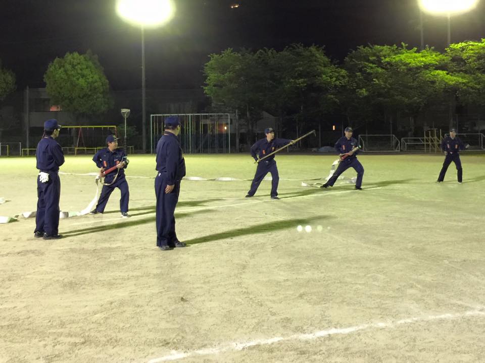 終了後は、今シーズン初回の、地元水防団・消防団ソフトボール(ナイター)の打ち上げ飲み会に合流。最期に全員で「ガンバロウ」をやっていただき感激です。