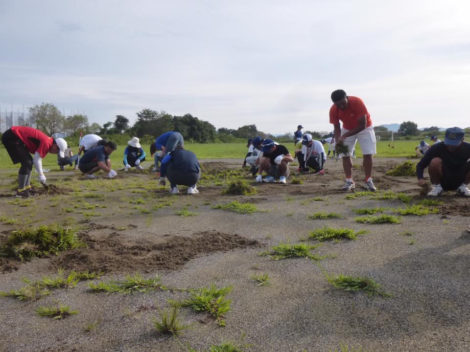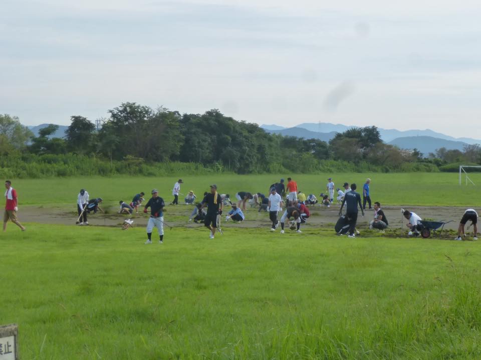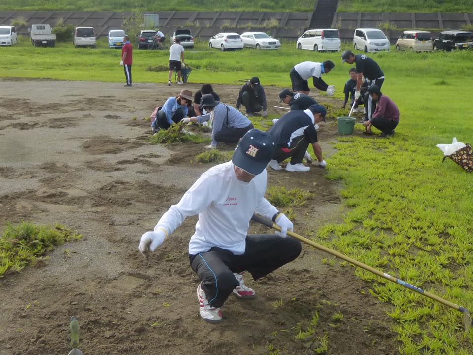 試合と言っても親睦行事で、守備交代は何度でも出入り自由。打順は集まった人数まで回ります。身内のヤジも飛び交う和やかな雰囲気の中、気持ち良い汗を流します。