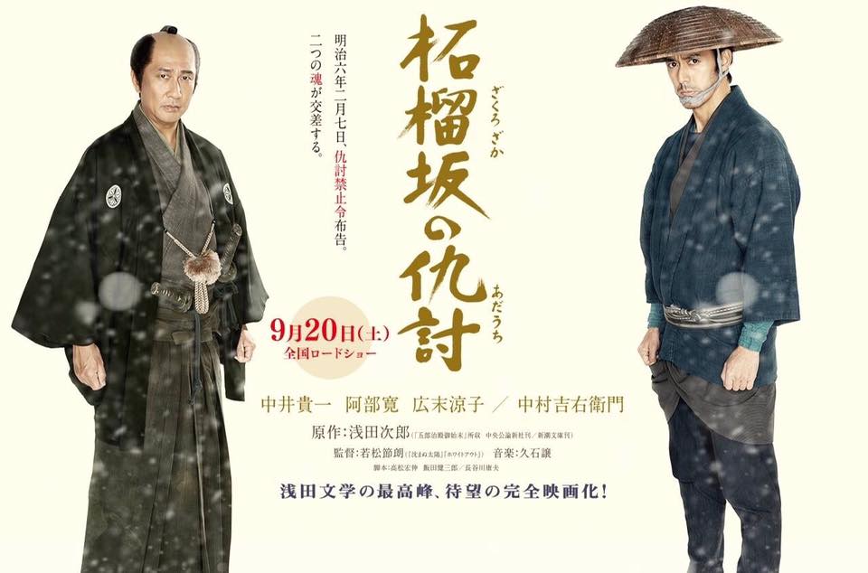 大老・井伊直弼が暗殺(桜田門外の変)。警護に失敗し、切腹も許されず仇討を命じられた家臣(中井貴一)が、妻(広末涼子)と苦労を重ね、最後の一人の水戸浪士(阿部寛)を見つけ出す。しかし、時代は大政奉還。既に命を発した彦根藩は存在しない。決行のため、車夫となった水戸浪士の人力車に乗り込んだ主人公。その朝、新政府は「仇討禁止令」を布告していた。会話の中で相手が悪人では無いと悟る。柘榴坂を登り切った所で、車夫が「自分を討ってくれ」と言う。主人公は刀を抜いて、そして…。