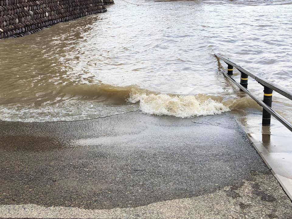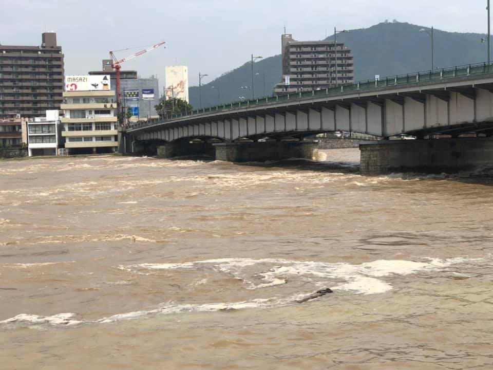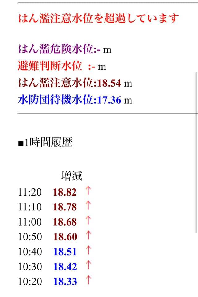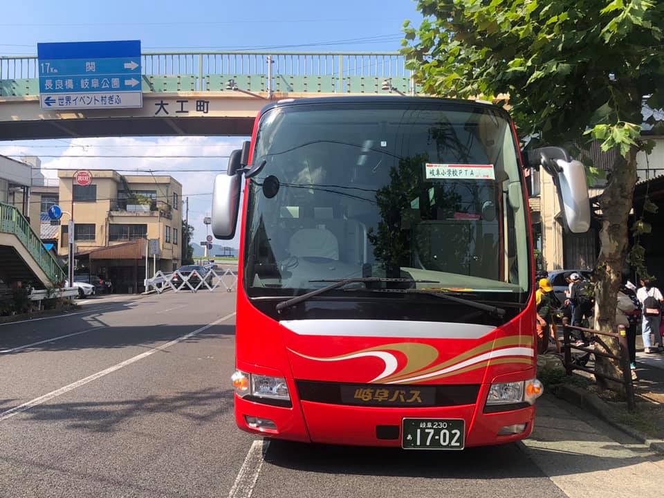 8時15分出発の計画でしたが、関市に大雨洪水警報が出ているため、教頭先生と相談して体育館で待機。現地職員に電話で状況を聞いたり、先遣隊の車を走らせたり…。1時間以上遅れて、堤防から離れた国道156号線経由で現地へ向かいました。岐阜バスさん、ご協力有り難うございます。