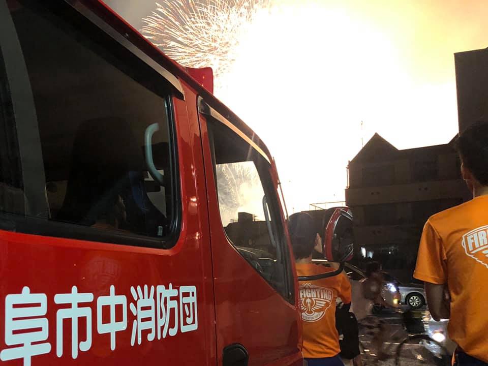 終了後は、名鉄岐阜駅方面の花火客の帰り道となり、復路のバス停(往路と違う)の場所を何十回となく答えます。たくさんの人がトイレを借りに寄られました。※今年から洋式です…。