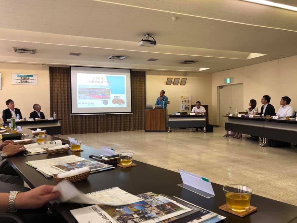 2日目の研修は、「クボタにおけるスマート農業への取り組みについて」。講師は、(株)クボタ特別技術顧問(元専務執行役員)です。