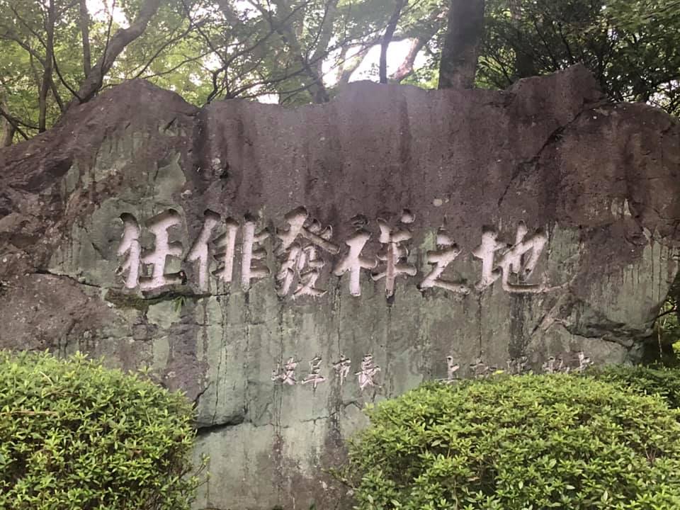さて、岐阜公園の「若き日の信長像」。総合案内所の完成に合わせて、公園内の冠木門横から現在地に移設。製作は北村西望氏(明治17年~昭和62年)で、テレビに映る「長崎平和祈念像」と同じ作者です。