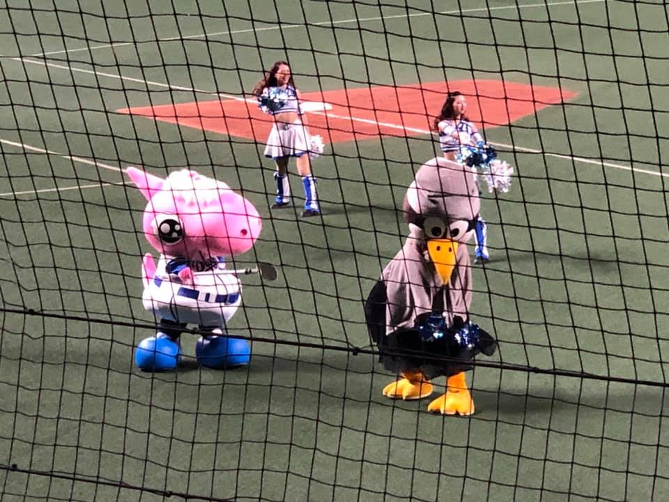 満員御礼のゲームは、四回裏、岐阜総合学園高校出身の大野奨太選手が勝ち越しの犠牲フライを放つ(写真①)などして10対4で快勝。岐阜市のイメージアップを後押ししてくれました。