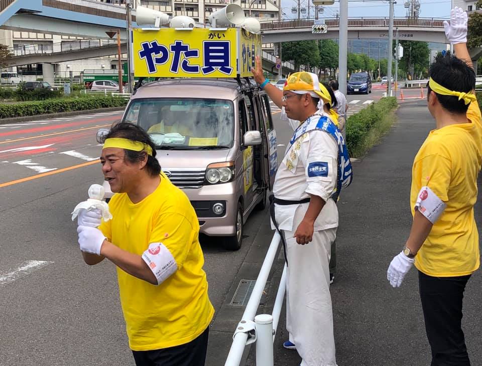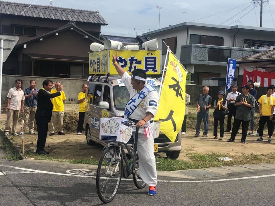 谷田貝候補は4期目への挑戦(まだ40歳)。雄姿をご覧の通り、桁外れの行動力は、私が一目も二目も置く所です。