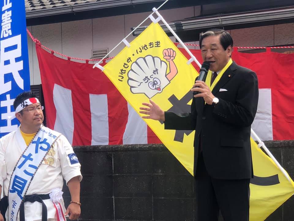 応援のマイクを持つのは、犬山市長=山田拓郎氏、衆議院副議長=赤松広隆氏、衆議院議員=近藤昭一氏(立憲民主党愛知県連代表)・松田イサオ氏(同6区支部長)、参議院議員=斎藤嘉隆氏・田島麻衣子氏。国会議員を岐阜県連に少し分けて下さい…。