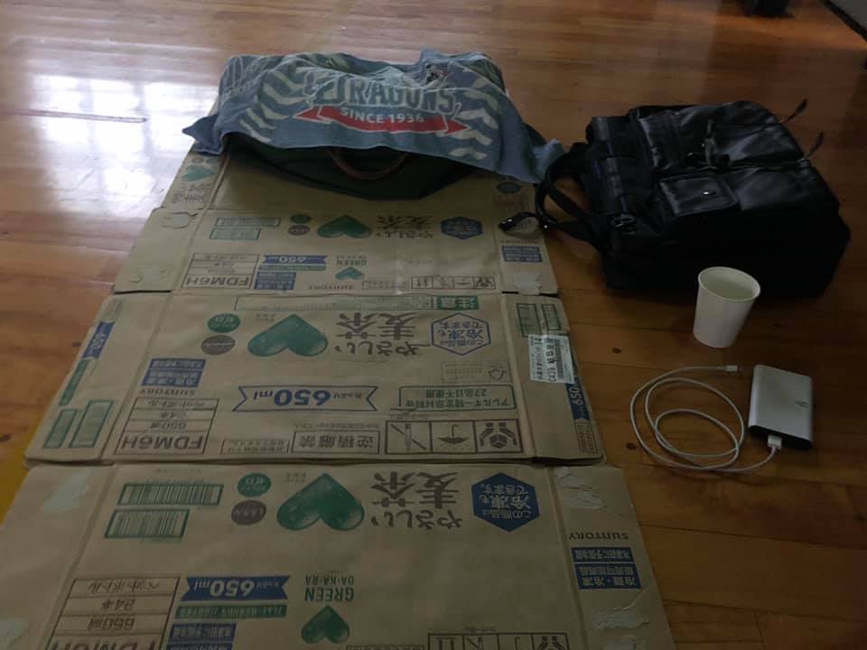 私は、出入口を塞ぐ位置で、ダンボールを敷いて、スポーツバッグを枕に眠りました。3時30分超まで起きていた強者グループもいたようです。