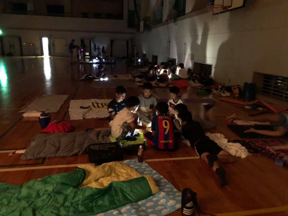 ぎふまち子ども会インリーダーの災害時避難宿泊体験(学校へとまろう!)。